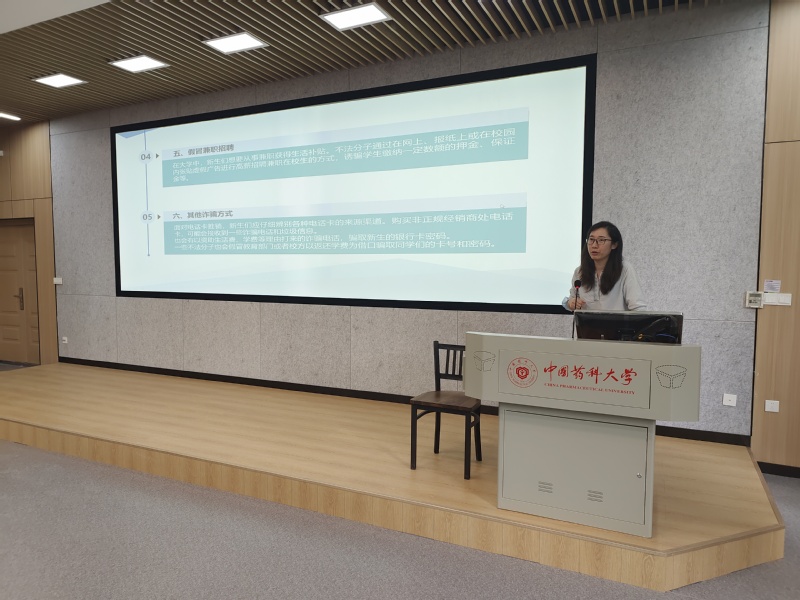 接着,学院兼职辅导员曹志婷老师从常见的诈骗手段、常见的典型案例、预防诈骗措施等方面为新生进行了防诈骗教育,较好地提升了新生的防骗意识,有效提升了新生识别诈骗的能力。